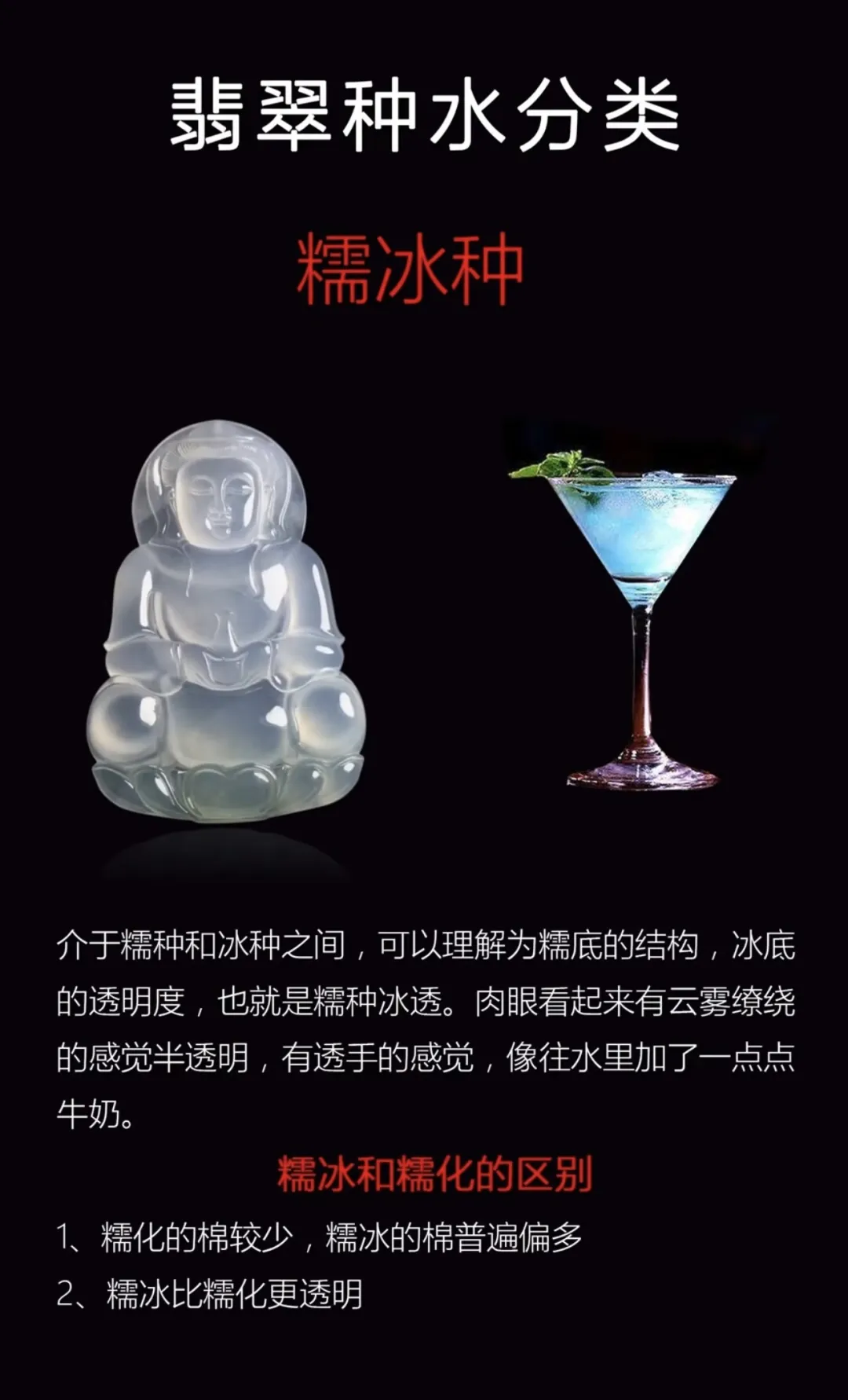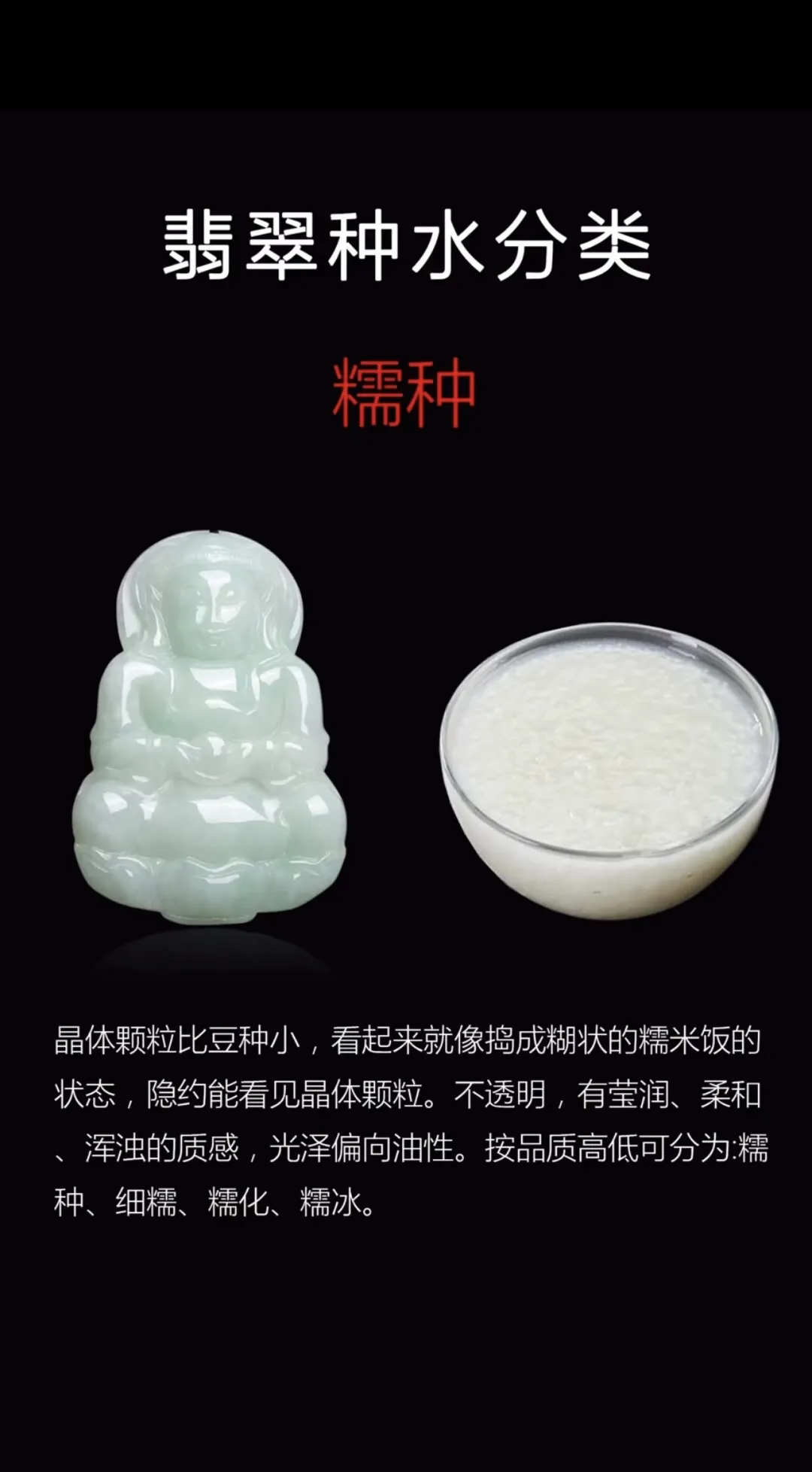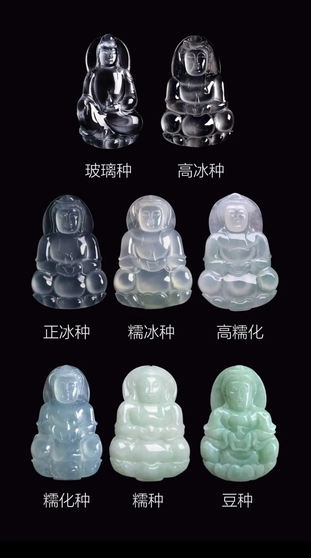 玻璃种,高冰种,正冰种,糯冰种,高糯化,糯化种,糯种,豆种。