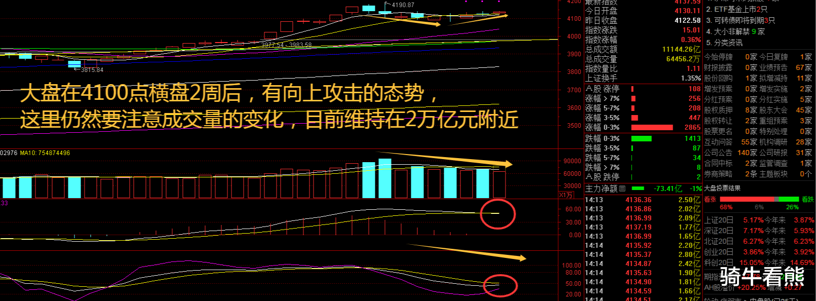 上证指数周五出现了第8个交易日的横盘震荡,始终还是在4100点之上盘整,这也说明主力资金不拉升但也不想下跌,两者之间更倾向于“向上”。会议重点强调建设现代化产业体系。一是本次会议将“建设现代化产业体系”放到第一位。二是新增“航天强国、交通强国”的表述,显示对空天技术、智慧交通等新技术应用的重视。接下来注意上证指数能否在4130点之上稳住。