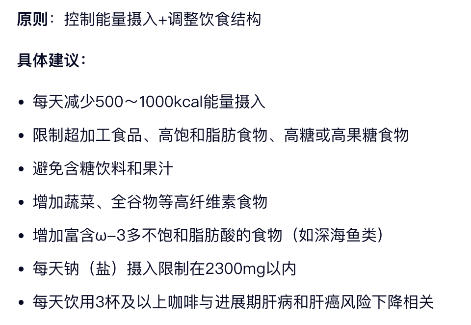以上的内容来自《代谢相关(非酒精性)脂肪性肝病防治指南(2024年版)》,仅供科普分享,不构成医疗建议,如有身体不适的,建议尽早去医院就诊,遵医嘱执行,特别不要去信什么偏方。