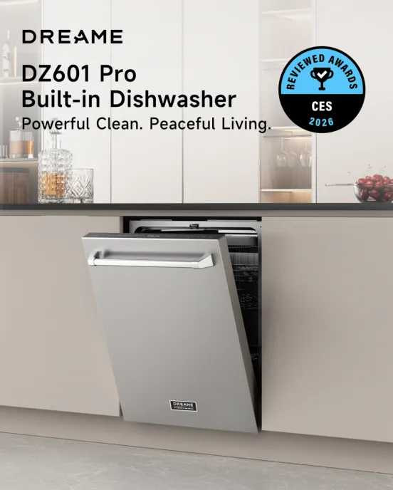 在结构与设计层面,DZ601 Pro采用三层碗篮系统,上层支持升降调节,具备16套大容量,可灵活应对家庭聚餐与日常高频使用。24英寸嵌入式设计搭配耐指纹不锈钢机身与同色金属把手,使其在功能与空间美学上实现高度融合。凭借综合性能与用户体验优势,该产品在CES期间成功斩获由权威独立评测机构颁发的“the Reviewed Awards: CES 2026”,成为高端洗碗机领域的重要参考。