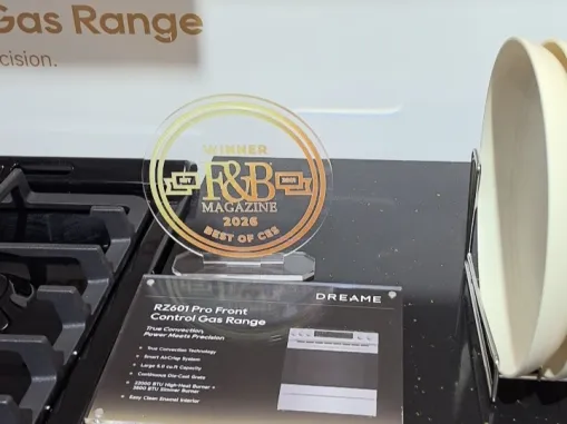 同时展出的追觅RZ601 Pro多头灶烤一体机,则从“火力与灵活性”角度补全厨房系统。其采用热风循环烘烤方式,通过后置风扇与独立加热元件的配合,让热量在腔体内均匀流动,确保每一次烘焙和烧烤都受热均匀、效果稳定;内置空气炸模式并配备专用炸篮,让轻油烹饪成为日常选择。灶具部分最高可达22000 BTU强劲火力,满足爆炒等高火力需求;中部还配备专为长条形煎盘设计的长条形燃烧器,可同时煎制pancakes、培根和鸡蛋,满足美式早餐等高频家庭场景。预约烹饪与自清洁功能的加入,使厨房管理更加高效有序。该产品在CES期间获得F&B Magazine“Best of CES 2026”奖项,进一步印证了其在功能整合上的竞争力。
