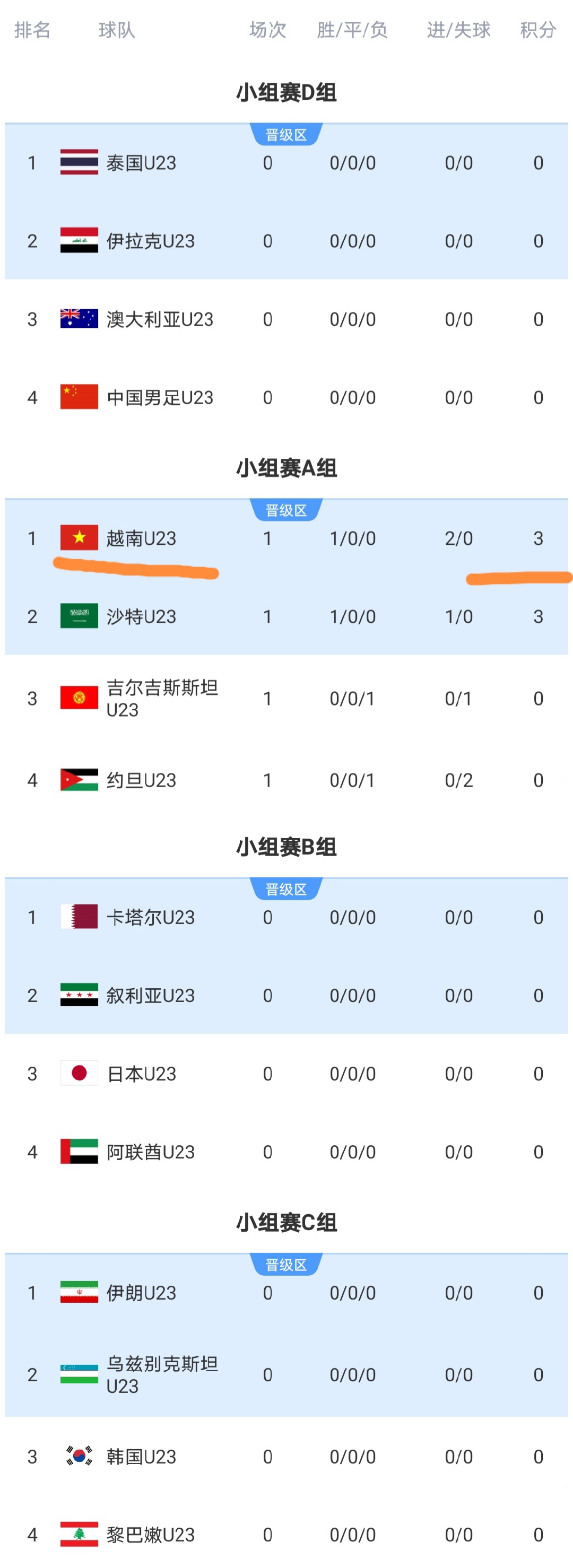 昨晚至今天凌晨,在沙特举行的U23亚洲杯率先结束了2场比赛,这两场比赛结束之后,亚洲杯小组赛积分榜正式更新,我们来看看具体的情况!