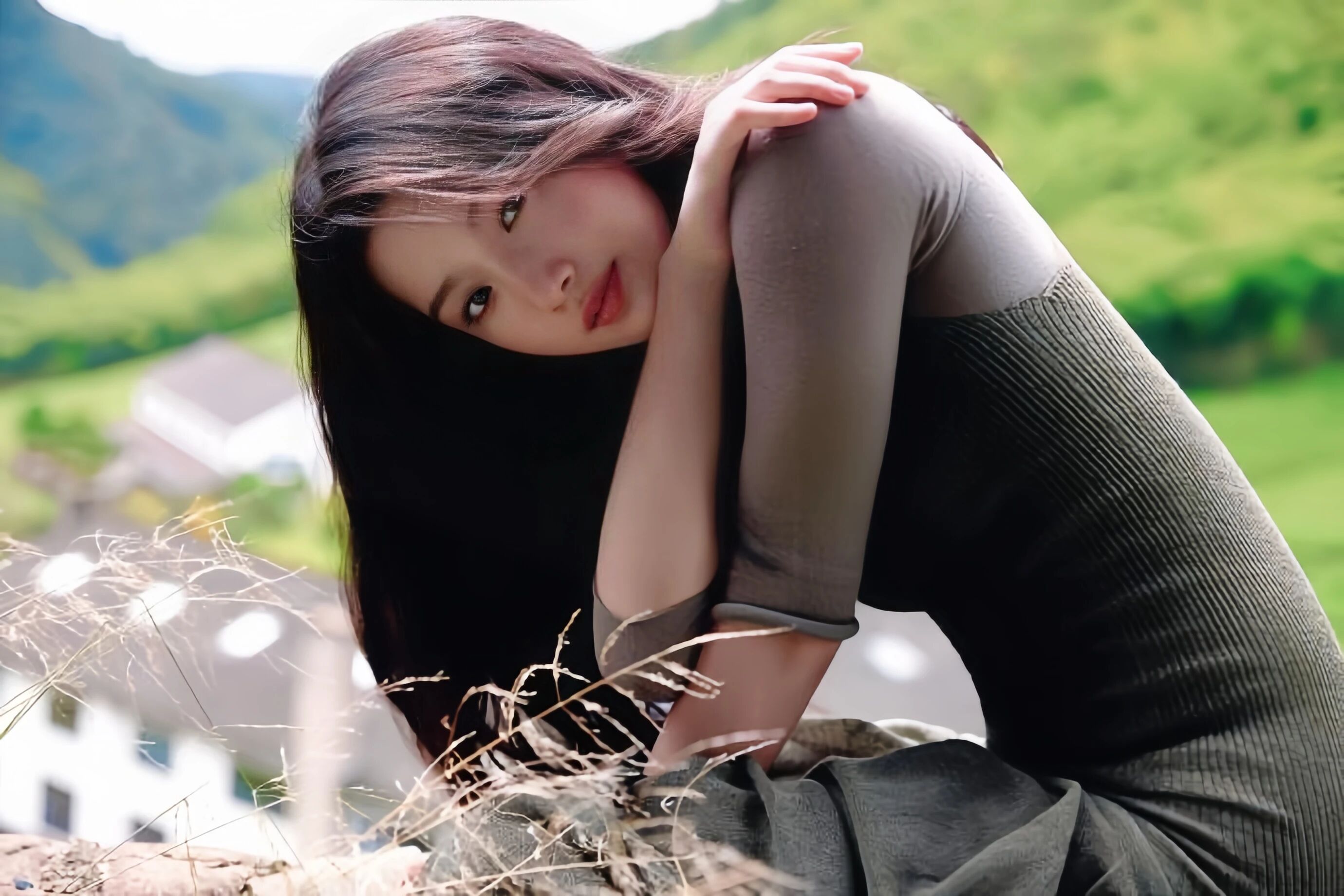 清晨的山风好似裹着茶田的清香漫过来时,我正对着屏幕里的卢昱晓发呆。不是那种刻意营业的精致照片,是她蹲在石墙上,裙摆垂在青草里的模样,阳光穿过发梢在颈窝投下细碎的影子,忽然就懂了什么叫 “天然去雕饰”。