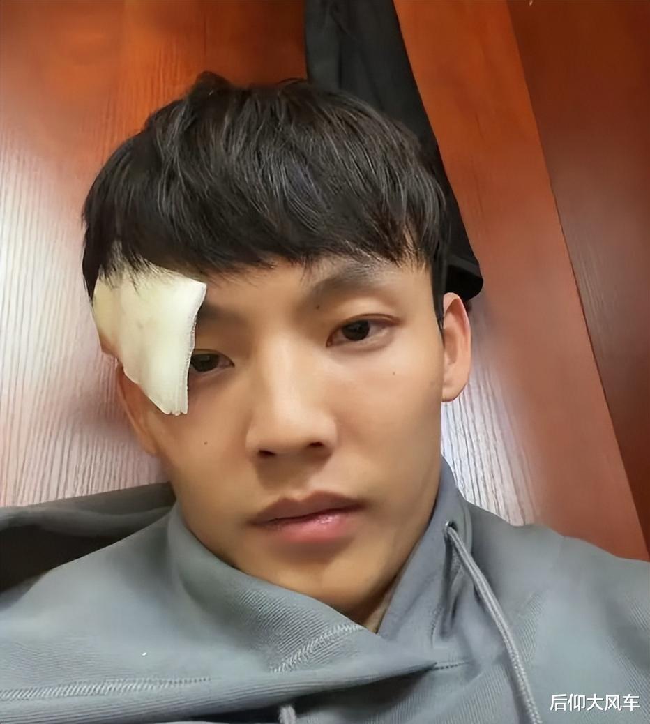 在昨晚比赛结束后,徐杰在个人社媒上晒出了一组照片,从照片上来看,徐杰左眼部位的眉骨贴了一大块纱布,纱布边缘还带有血迹。