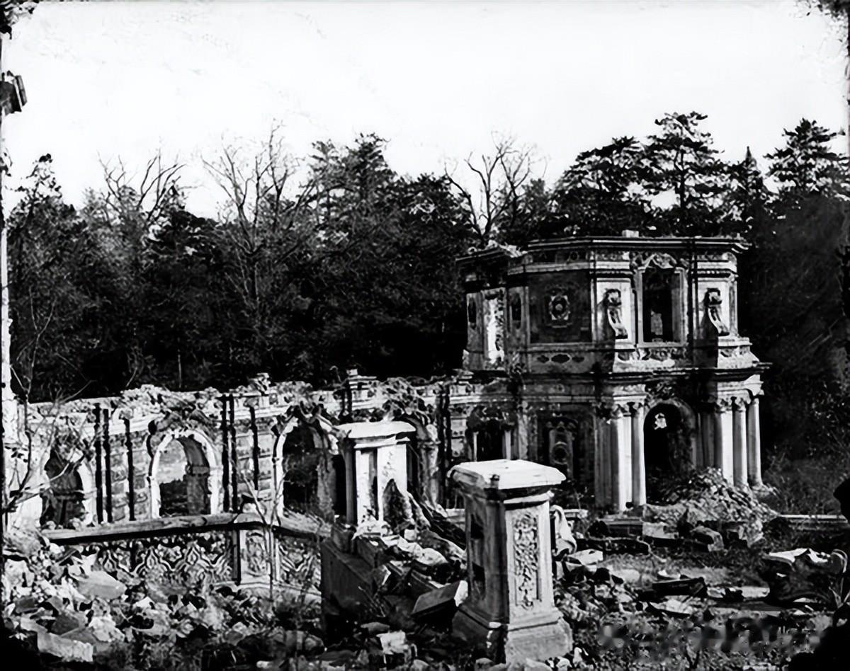 咸丰十年九月初三(10月16日),内务府大臣宝鋆在《宝鋆奏禁园被抢印信遗失折》中说,八月二十三日(10月7日),有200名侵略军闯入万寿山清漪园,“将各殿陈设抢掠,大件多有伤损,小件尽行抢去。”第二天,侵略军又冲进玉泉山静明园,抢掠一番。在这封奏折上,宝鋆还说:“静宜园(即香山),夷人并未前往,各殿陈设,照旧封锁。”可见,英法联军第一次侵入三山五园后,主要烧毁了圆明园,清漪园和静明园遭受了抢劫,但没有被焚烧。以上图文仅供参考,如有侵权和错误请及时留言补充,此敬。
