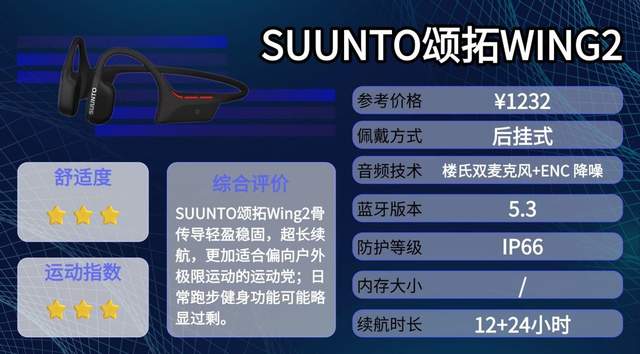颂拓Wing2延续户外运动基因,骨传导开放式设计,兼顾音乐和环境感知,更适合户外运动。IP66防尘防水,汗水或小雨都不用担心。蓝牙稳定,续航充足,支持便携式无线充电舱,适合长时间训练或户外探险使用。