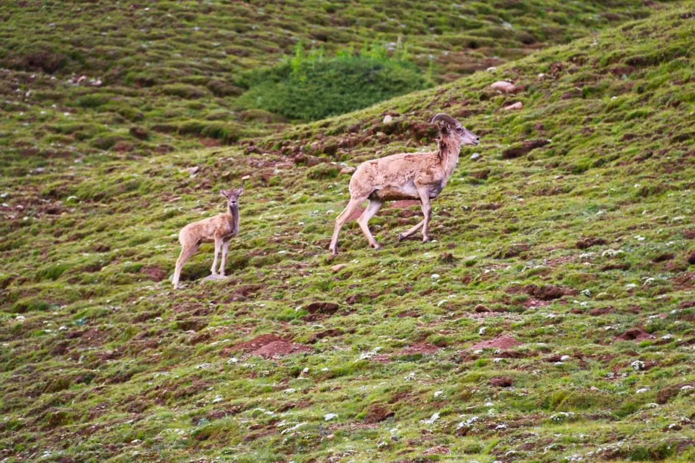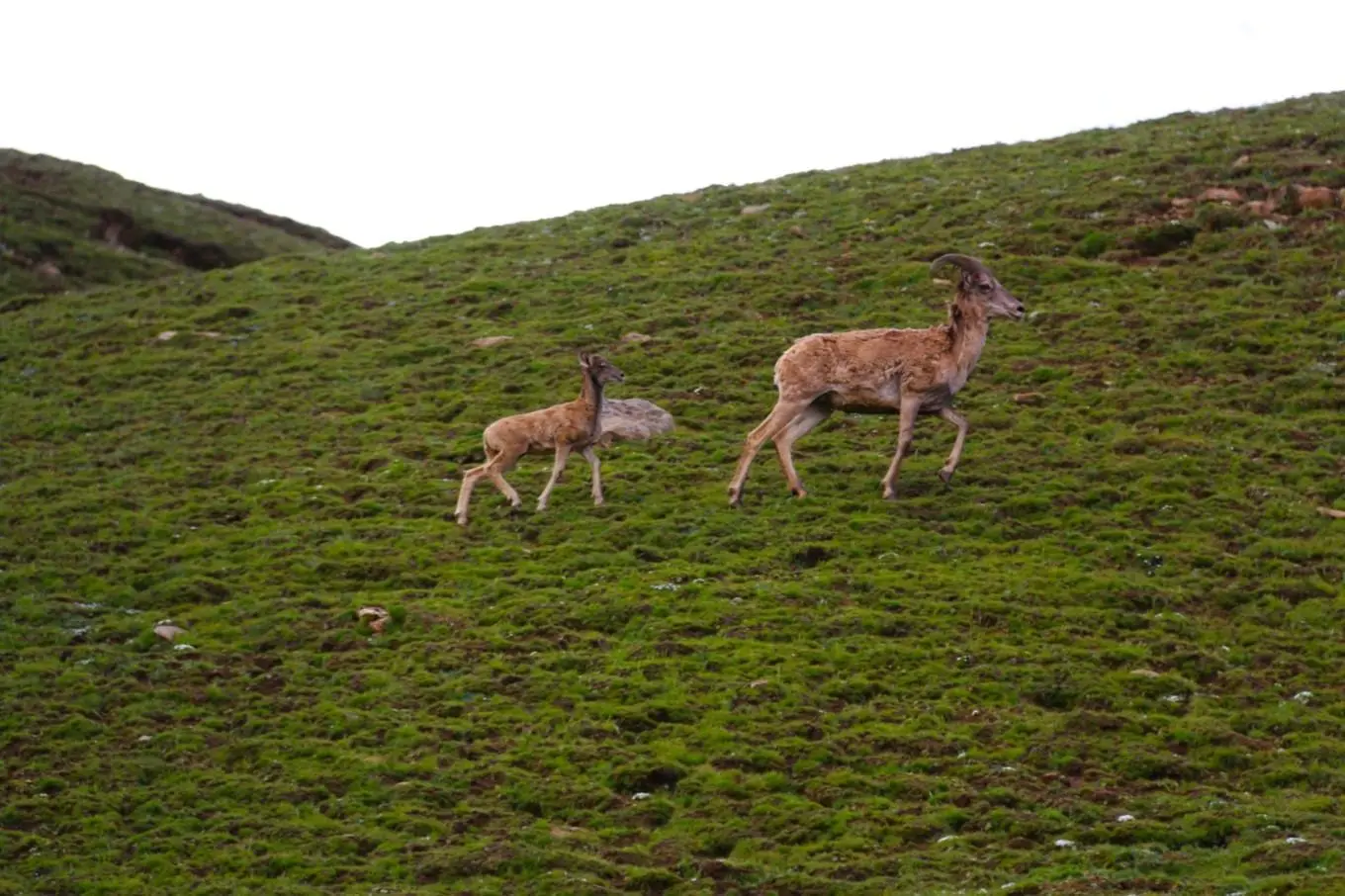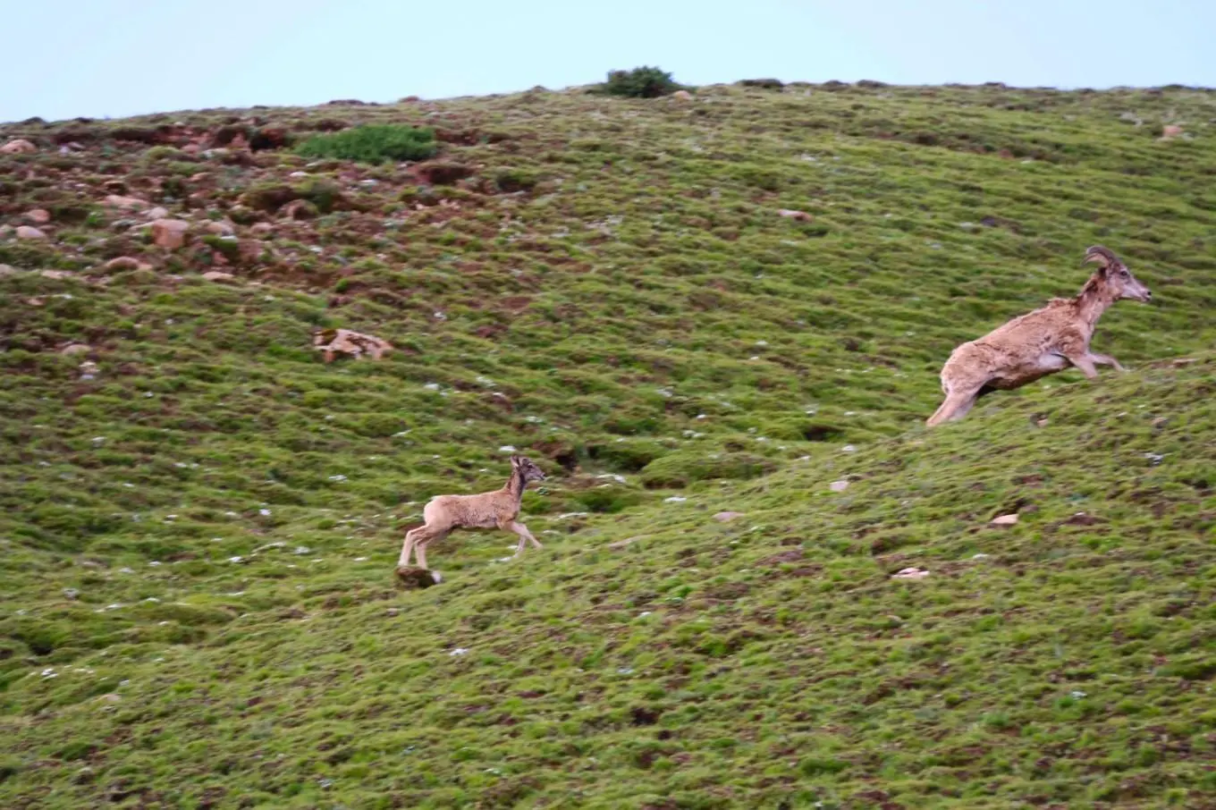 当我们正准备离开的时候,一对母子从河谷跑了上来,一前一后翻过道路冲上山坡,消失在山梁之后的蓝天里面。