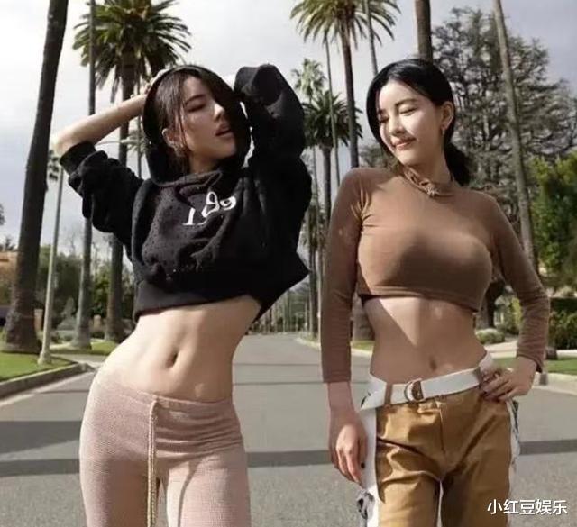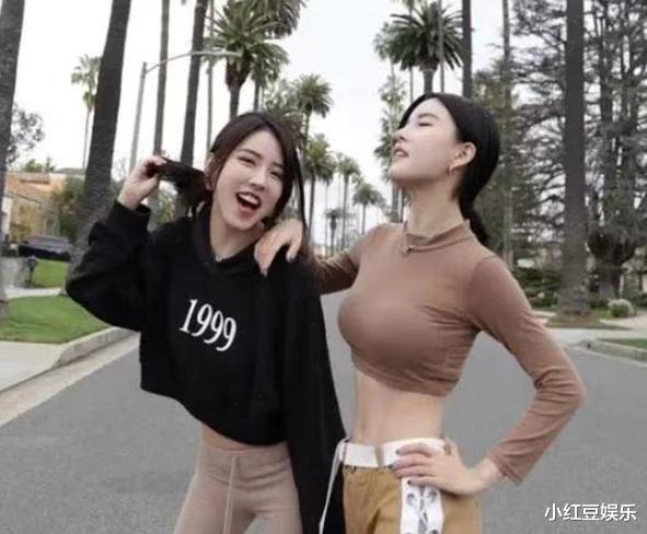右边的姐姐看起来沉稳大气,穿着黑色休闲服的妹妹十分活泼,两个人都拥有性感的马甲线,纤细的四肢,以及笔直修长的双腿。
