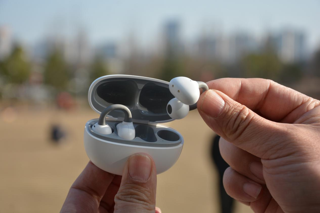 佩戴方面:这款耳机采用C形桥结构加上云朵缓压气囊,佩戴起来非常方便,单耳重量只有5.2g,戴上去轻盈又舒服,长时间佩戴耳朵也不会觉得难受,整体佩戴体验很优秀。