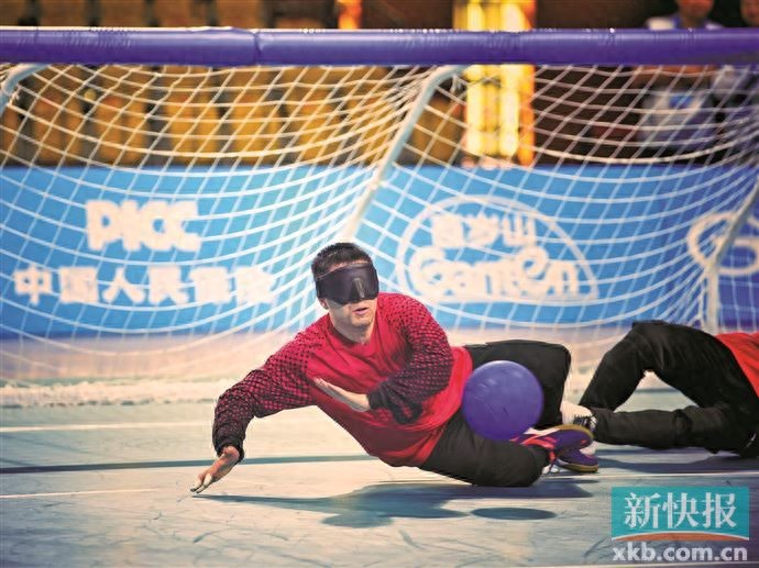 ■盲人门球比赛中,防守者通过球内铃铛发出的声音判断来球方向。
