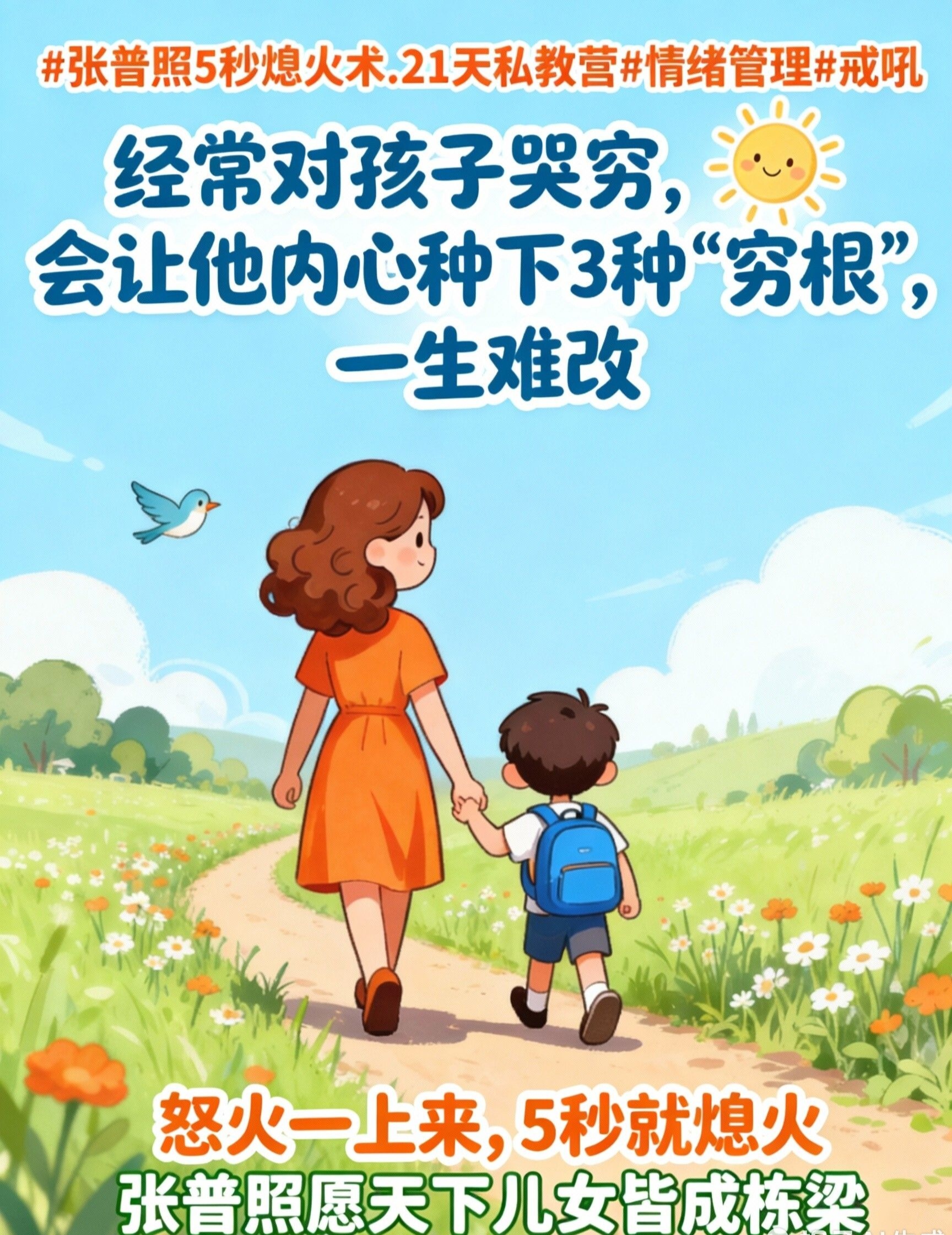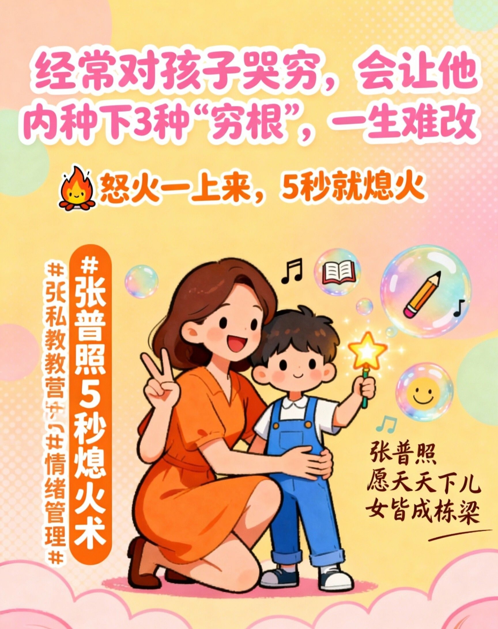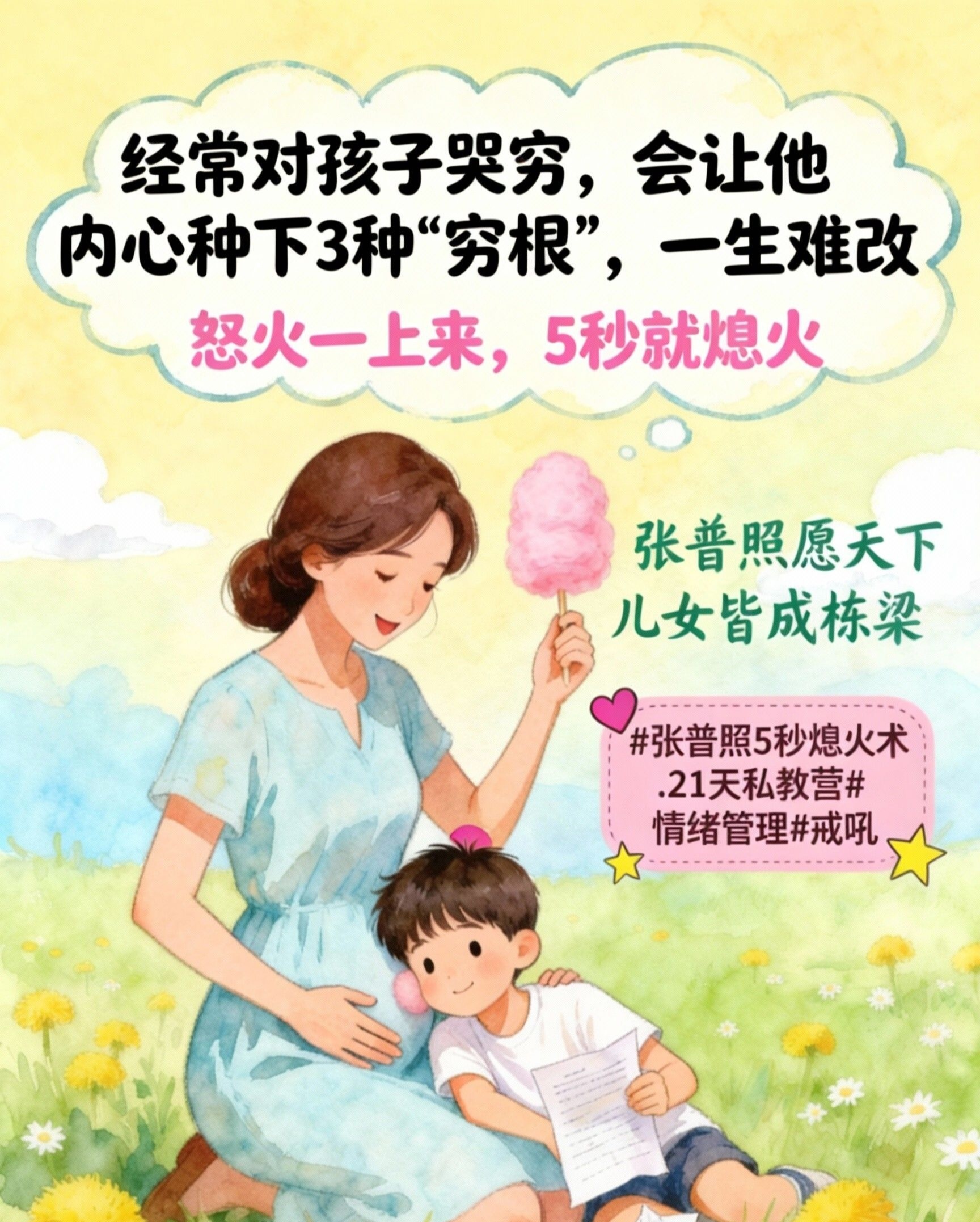‘张普照5秒熄火术’,就是帮你 在‘哭穷’的话即将脱口而出的瞬间,切断情绪毒素输送的根本方法。 在你为钱发愁,忍不住想向孩子倾倒焦虑、抱怨生活的 那个5秒,它帮你 把那股毒能量瞬间转化为沉默或一句平静的陈述。没有这个5秒从‘情绪源头’消毒,你每哭一次穷,都是在给孩子的内心‘穷根’施肥浇水,他一辈子都难挣脱。”