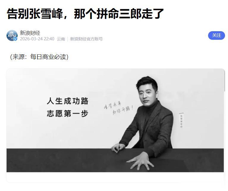 信息来源:告别张雪峰,那个拼命郎走了