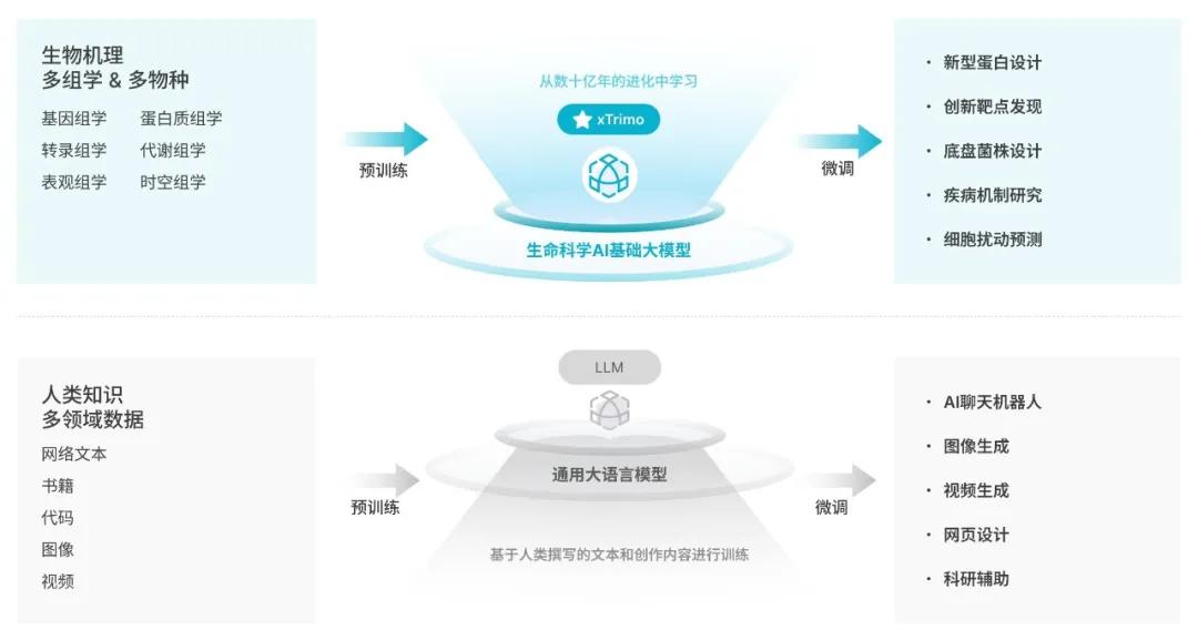 与通用大模型不同,BioMap xTrimo 是一个专注于生命科学领域的 AI 基础模型,基于大规模、多模态生物数据进行训练,旨在解读生命科学的机制。