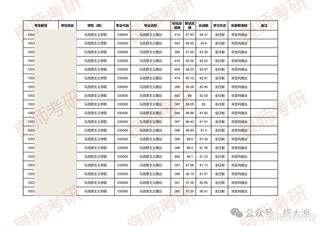 湘潭大学25考研拟录取名单