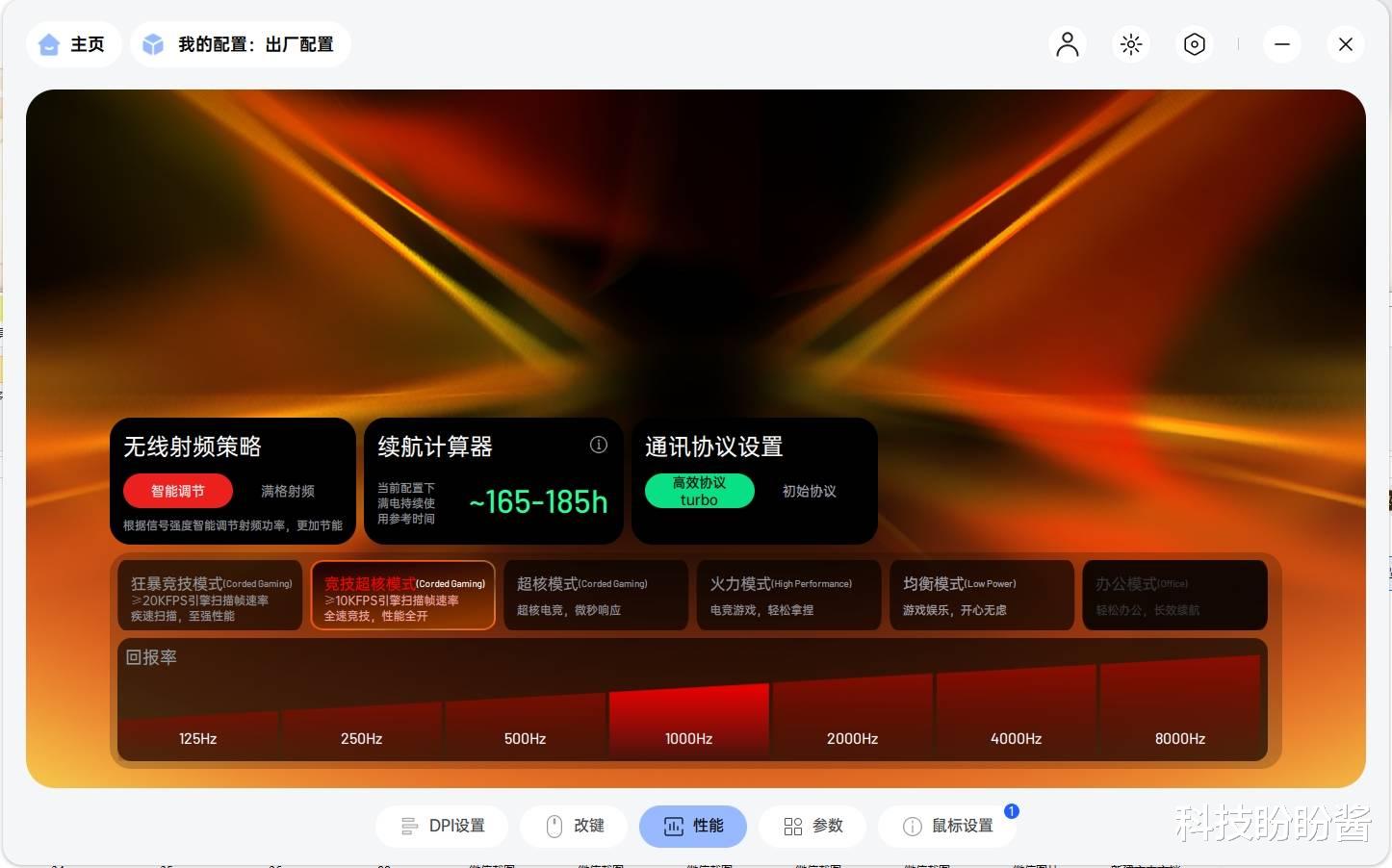 续航表现也让人很省心,800mAh电池容量,在1K回报率下续航超长,能实现750小时的连续续航,就算在8K回报率下,也能得到120小时的连续使用,续航也完全能满足日常使用。我每天使用8小时左右,充一次电就能用很久,不用频繁充电,对懒人太友好了。