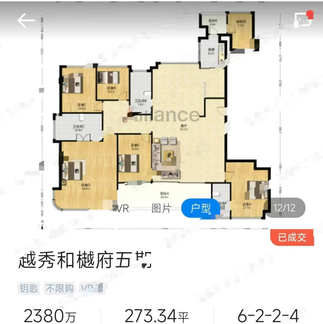 近期和樾府连续成交了几套270㎡的大平层,单价站上6万/㎡+,比如和樾府五期这套 273㎡大平层成交,总价 1800 万,单价 6.6 万 /㎡。