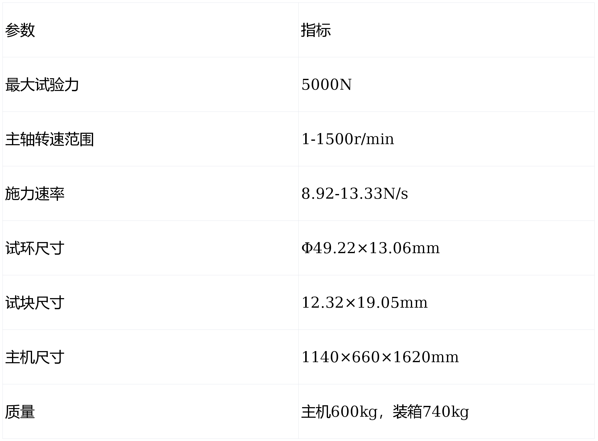 加载方式:以0.907kg/s~1.361kg/s的速率逐步加载,直至油膜破裂。