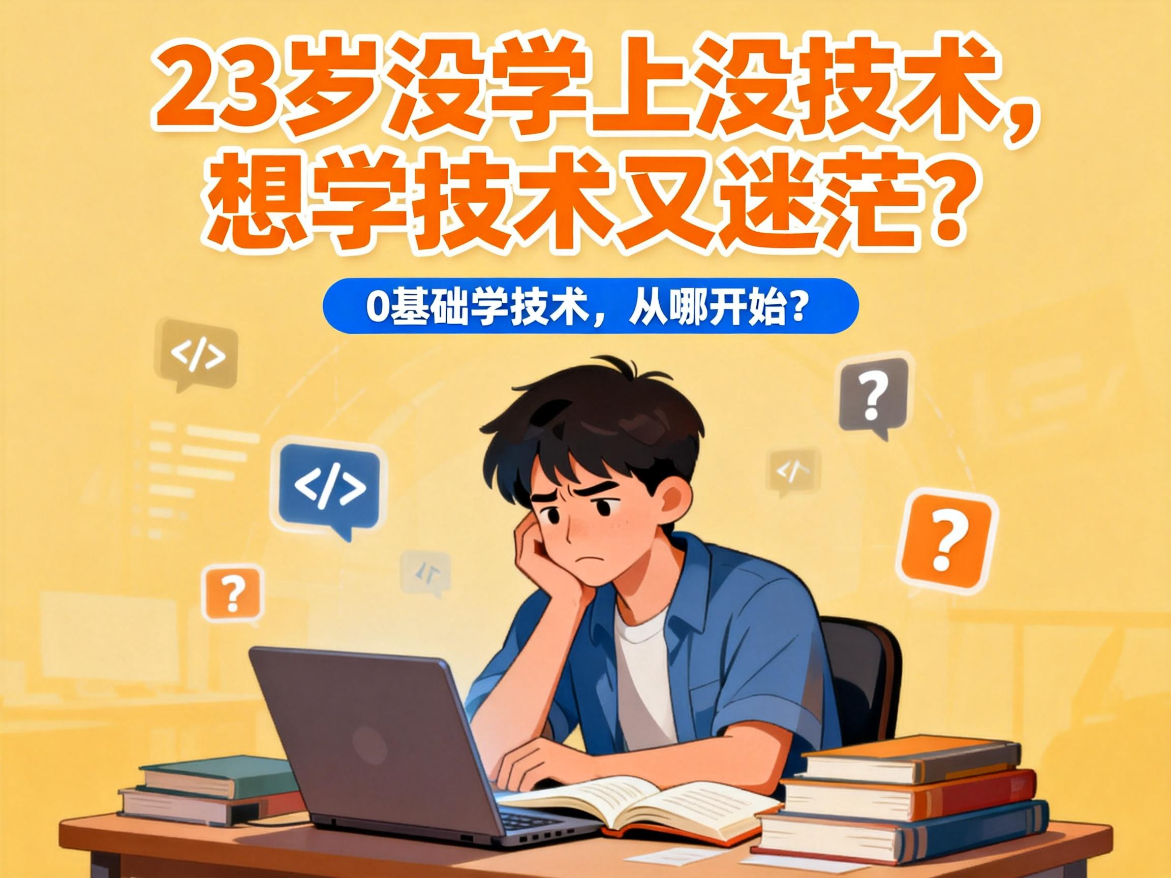 📱 经常在知乎、小红书刷到类似提问:“23岁高中/大专毕业,没正经学历没傍身技术,找工作只能干体力活,越干越焦虑怎么办?”“想转行学技术,但五花八门的方向太多,完全不知道选什么,怕踩坑也怕学不会”。