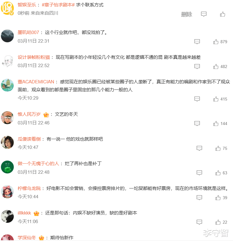 即便张艺谋年逾古稀产量不减,新作频出,甚至票房也不惨,但电影口碑比以前差很多,根源还是在没有好剧本。所以影后章子怡缺剧本,也是很正常的事。
