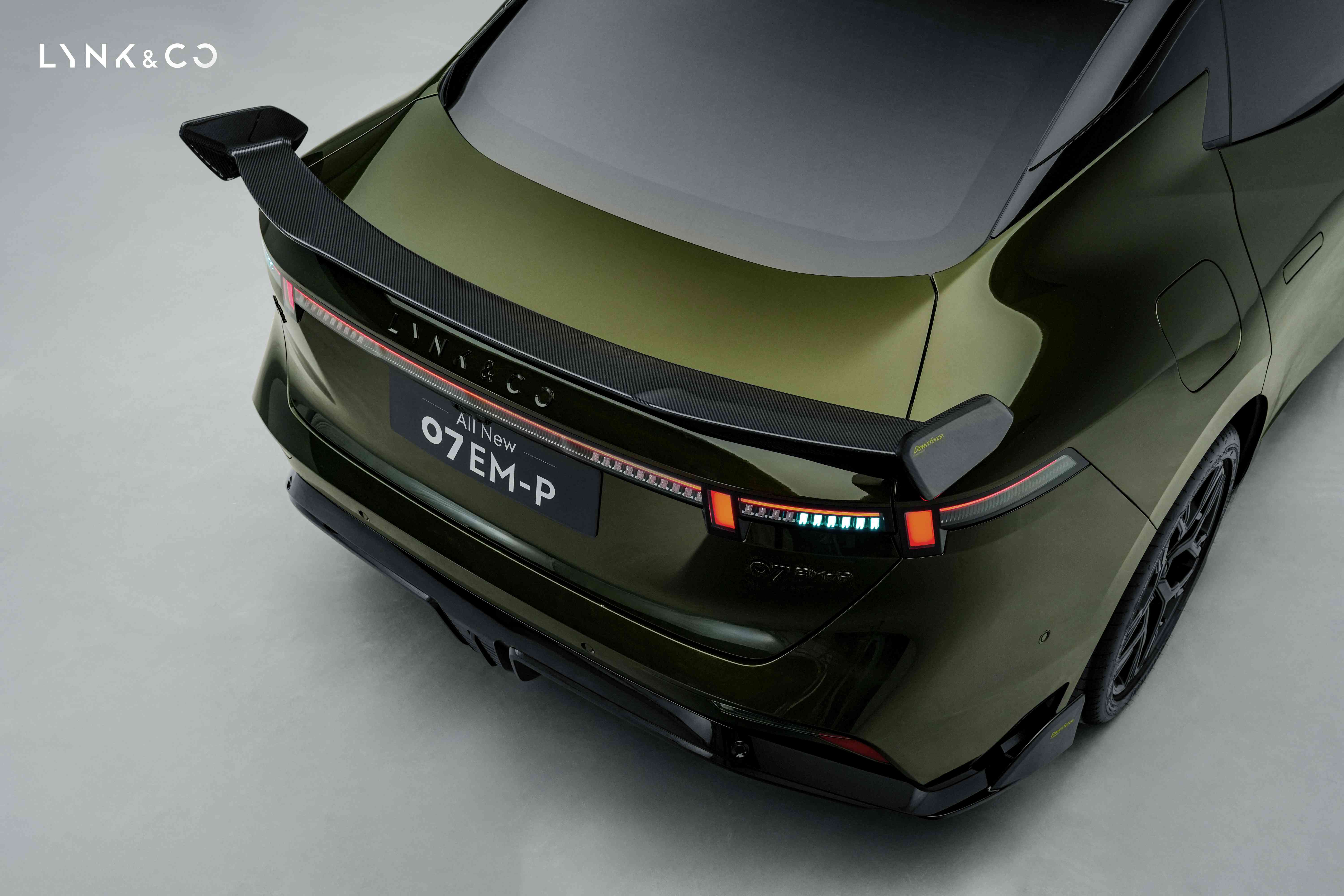 全新领克07 EM-P碳纤维尾翼版的出现,恰好打破了这种行业惯性。它新增的碳纤维尾翼不是简单的装饰配件,而是性能身份的外化符号,和整车原本的低趴姿态、辨识度极强的车身线条形成呼应,直接拉满接近赛道审美的速度感与力量感。