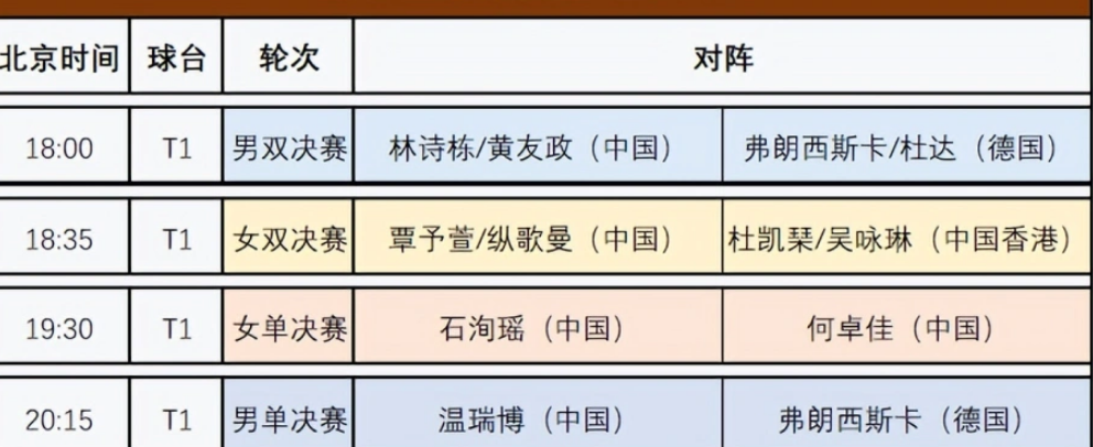 双打战场,国乒同样面临严峻挑战。林诗栋/黄友政的男双组合将迎战实力强劲的德国搭档弗朗西斯卡/杜达,后者曾横扫世界排名第一的中国香港组合,实力不容小觑。而女双决赛中,覃予萱/纵歌曼也将遭遇老对手杜凯琹/吴咏琳——这对中国香港组合曾零封国乒头号种子,此番再战,国乒姑娘们必须全力以赴。