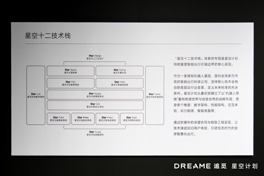 大部分还是概念阶段,离量产还有距离,造型设计之外,其实也看不出太多东西。我的注意力没有放在这些车上,而是转向展台另一侧 —— “星空计划”的十二全栈技术底座。