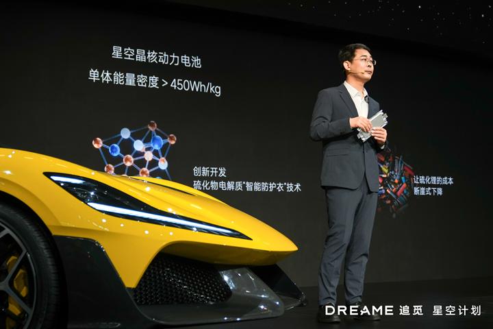 这是追觅汽车的另一块核心技术——星空天核动力电池。官方给出的说法是:全球首款可量产的 60Ah 超大全固态动力电池,单体能量密度超过 450Wh/kg。