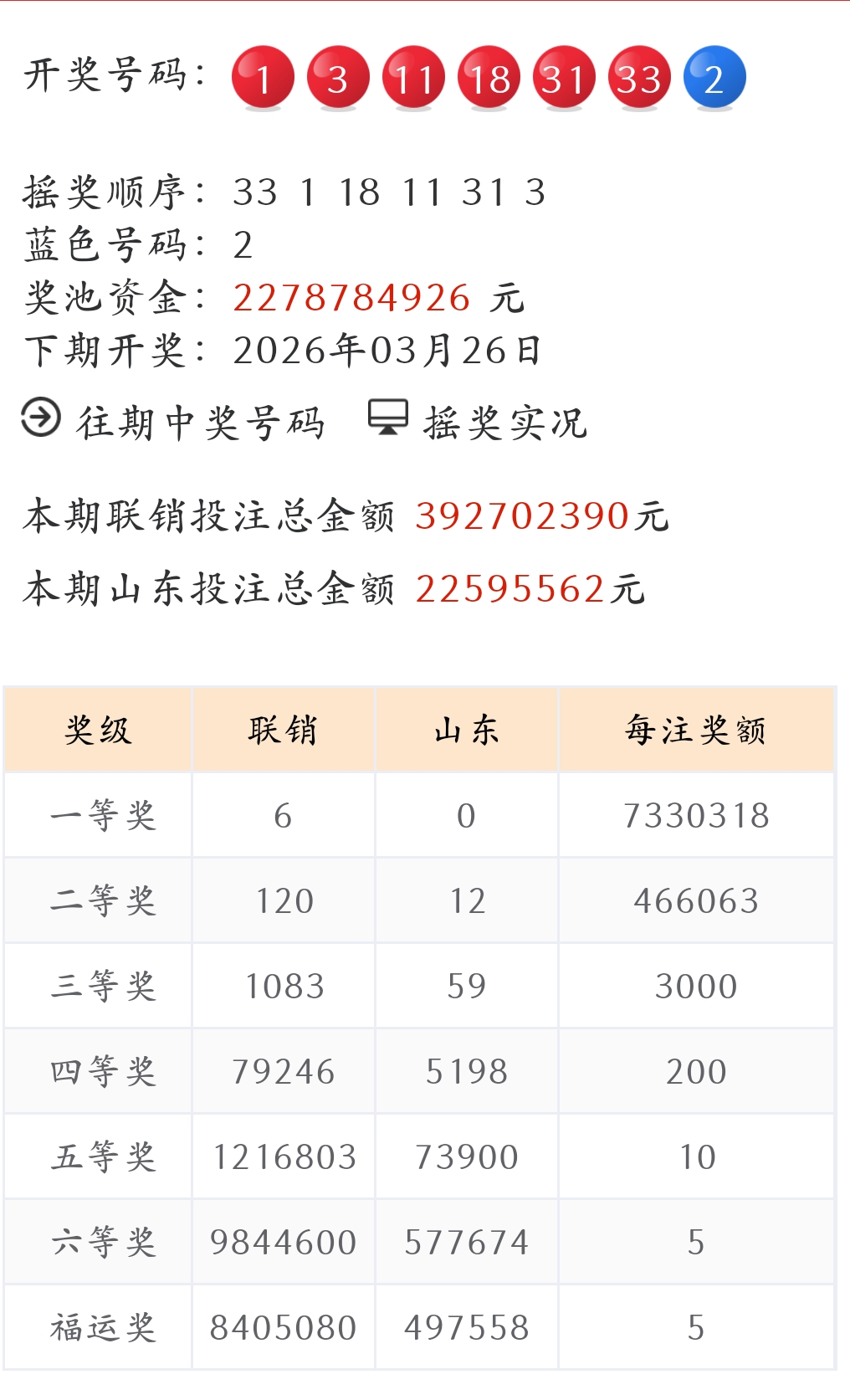 中福小双双2026032期开奖信息