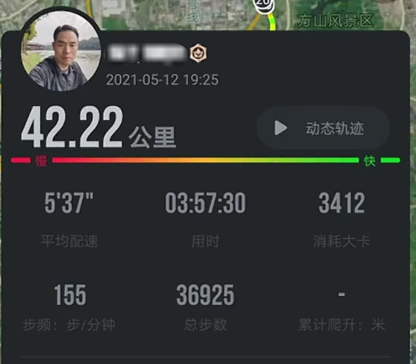 2021年2月他首次完成半马距离(非参赛),用时1小时56分7秒,此时他自称跑步已半年多,应该是从2020年6-7月开始坚持跑步的。到2021年3月,他已4次完成单次跑完半马距离。