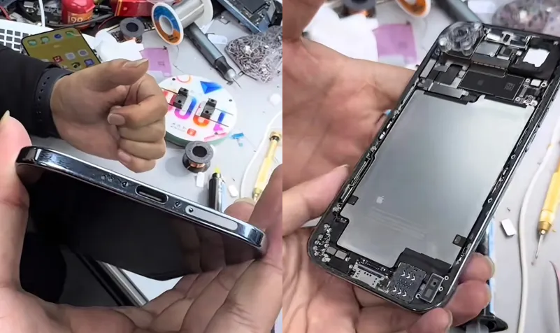 这里说明一下,改卡是对原机有阉割的,这个实体卡槽方案借用机器原来震动的空间,里面的震动也换成了一个特制版本,它现在震动的效果是不如原装,变得稍微轻了一点。此外第一个版本的插卡iPhone Air还不具备热插拔功能,也就是每次取卡或者说装卡都需要重启一下手机才可以重新获得信号。