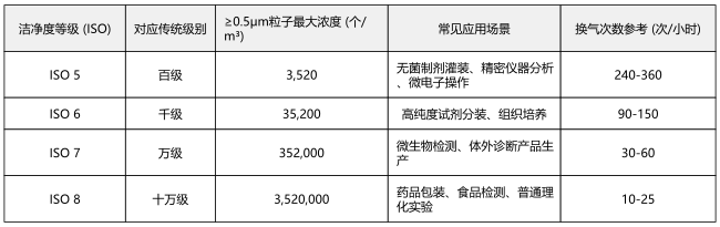表:常见实验室洁净度等级关键参数参考