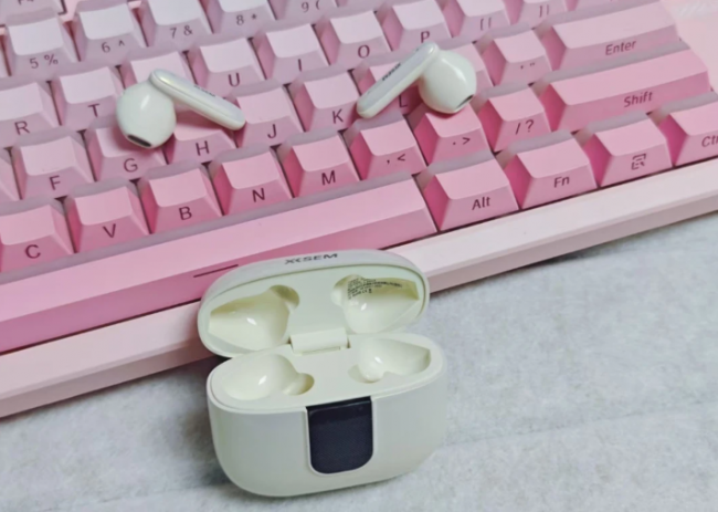 这款耳机采用半入耳式设计,外观简洁圆润,充电仓体积小巧,开盖手感顺滑且带磁吸结构,日常携带比较方便。耳机还支持轻度主动降噪,在通勤或室内环境中可以对部分环境噪声进行一定削弱。
