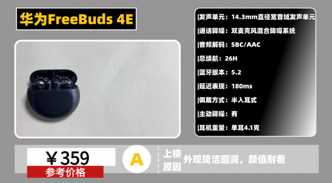 品牌2:华 为F reeBuds 4E蓝牙耳机