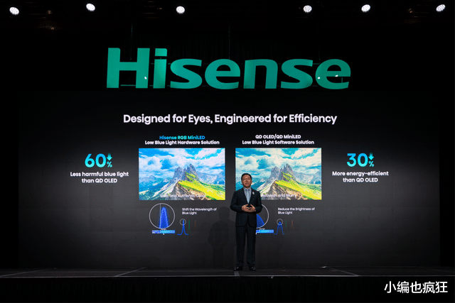 值得一提的是,光源和光色同控芯片的进化,让海信RGB-Mini LED实现了有害蓝光比QD-OLED降低60%,比传统QD-Mini LED降低75%,能耗降低30%,在拥有极致画质的同时,既是护眼先锋,也是节能标杆。