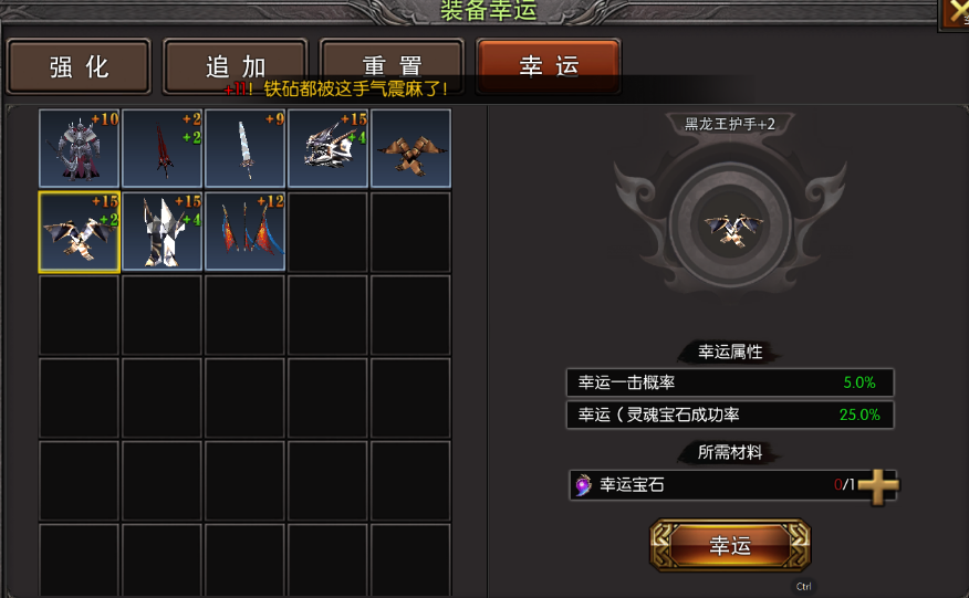 防具、武器等装备均可附加幸运属性,消耗幸运宝石即可参与,50%的成功率充满养成趣味。装备附加幸运属性后,不仅能提高后续强化的成功率,更能带来隐性战力加成,为勇士冲击高阶养成之路添砖加瓦。