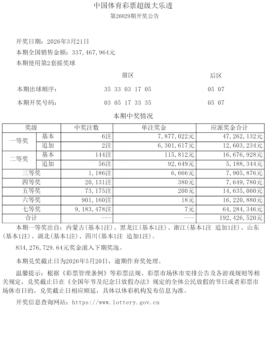 中体大乐乐2026029期开奖公告