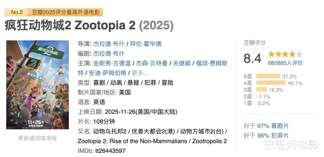 而《疯狂动物城2》算是将故事讲明白了,节奏感更好。