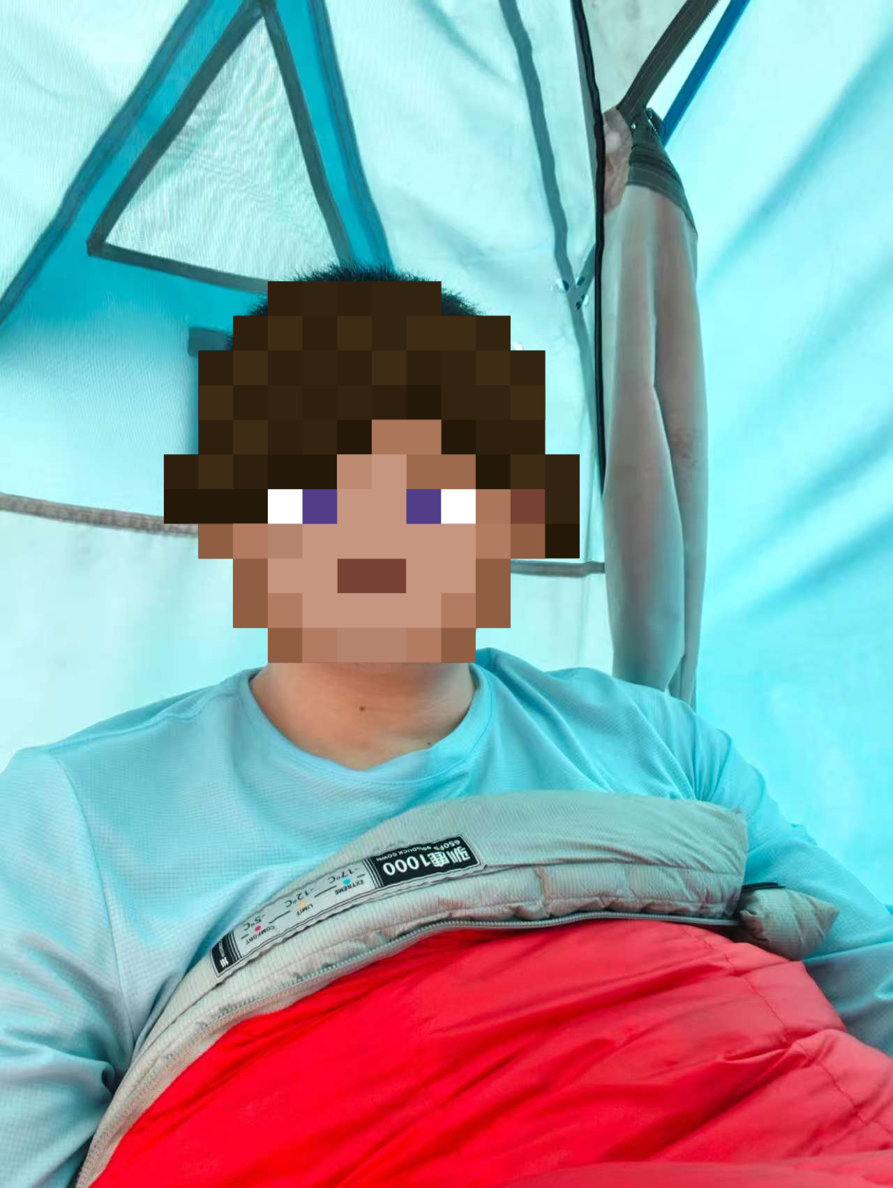 睡袋头部为三角帽型设计,躺在睡袋里可以将头部包裹住,阻挡寒气进入,对我这种怕冷的人来说是再合适不过的。