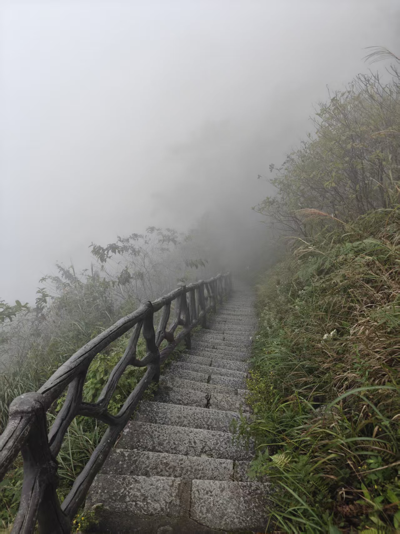 下山时一路苍茫,快到山下时才走出这浓雾。