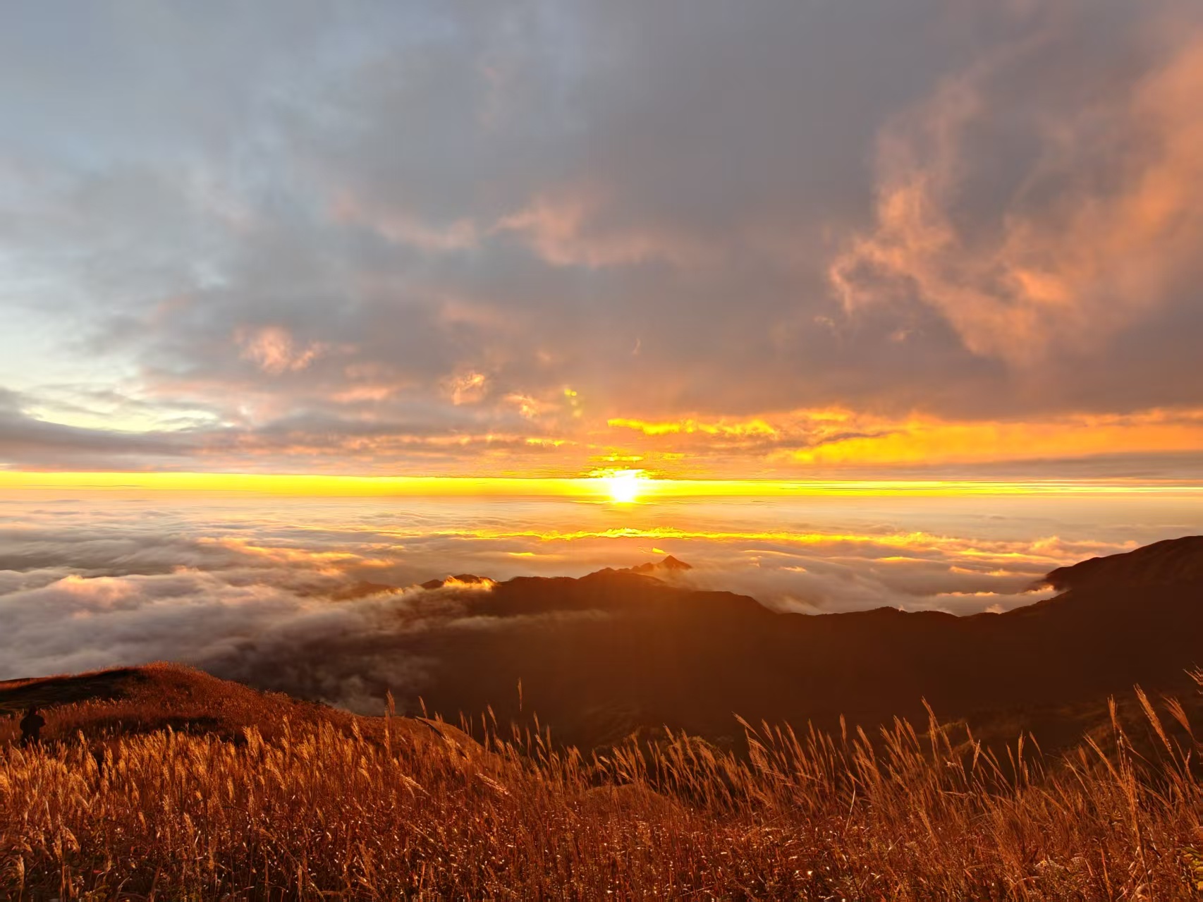 第二天早上确实如我所料,成功观看到了武功山的日出云海,极其壮观,日出之时周围响起了一片“哇,好美”的赞叹声,而我不语,只是疯狂拍照。这是我第十二次去武功山,但却是首次和武功山云海相遇。