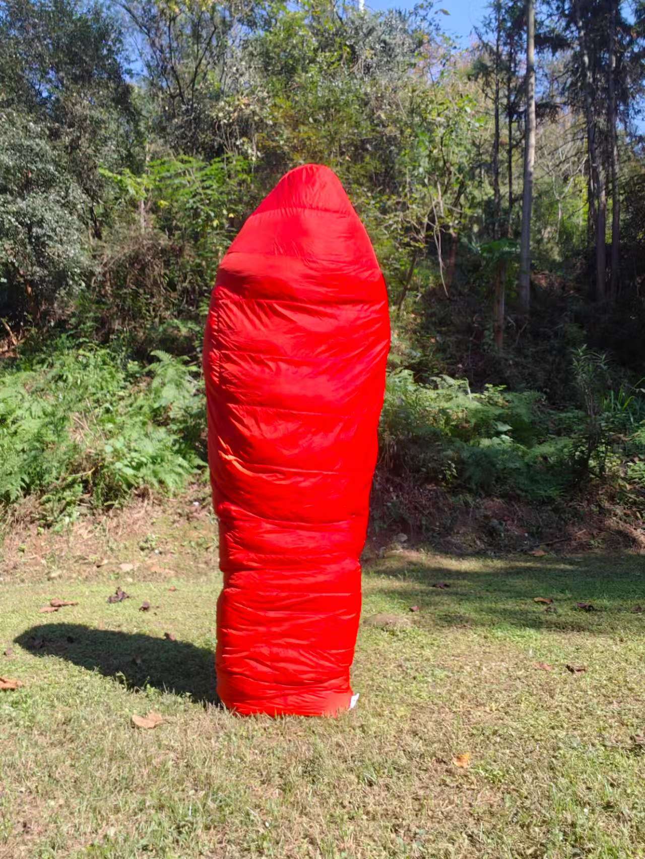 它内部填充的是高品质鸭绒,绒子含量高达90%,蓬松度达到650,填充量更是达到了1000克,理论适用温度范围从零下17℃到零下5℃。请不要嘲笑我“杀鸡用牛刀”,实在是因为我格外怕冷而山上天气又多变,能暖和一点总是没错的。