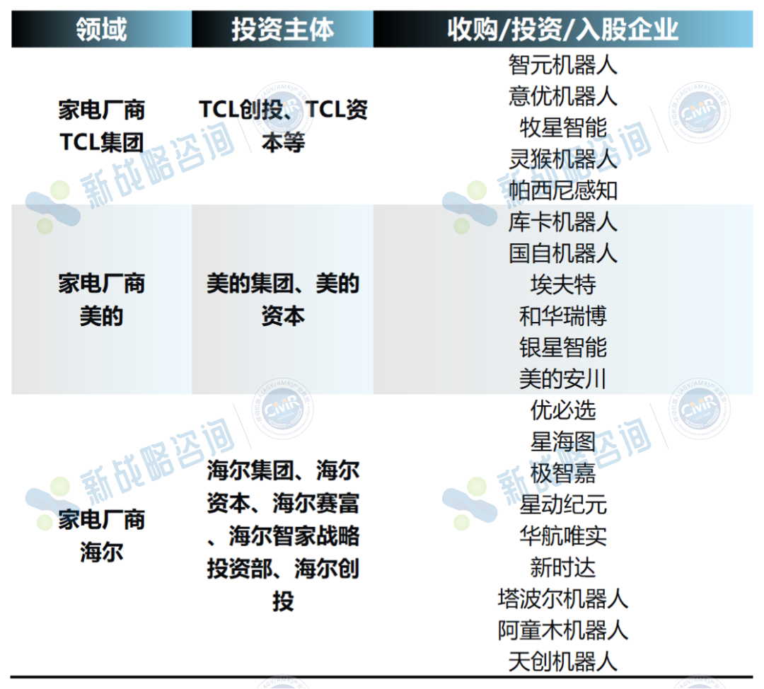 ▌ 家电厂商投资机器人企业总览