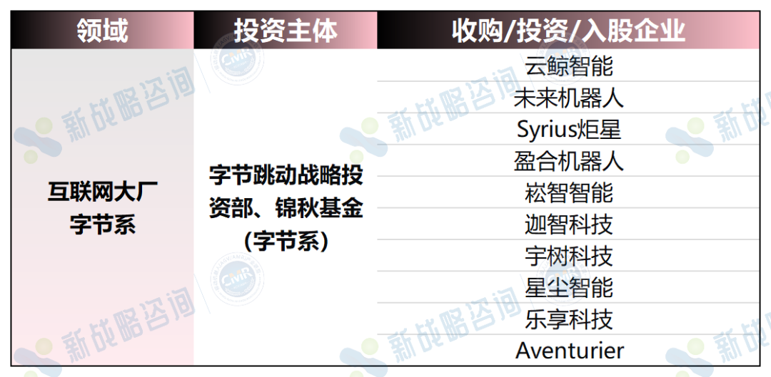 图表:字节跳动收购/投资/入股的机器人企业一览