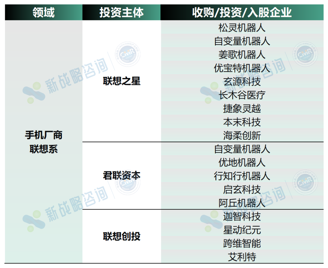 图表:联想收购/投资/入股的机器人企业一览