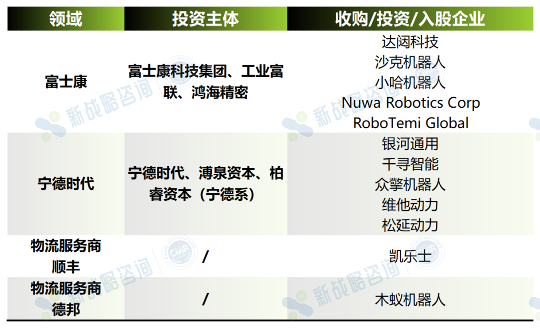 ▌ 汽车厂商投资机器人企业总览