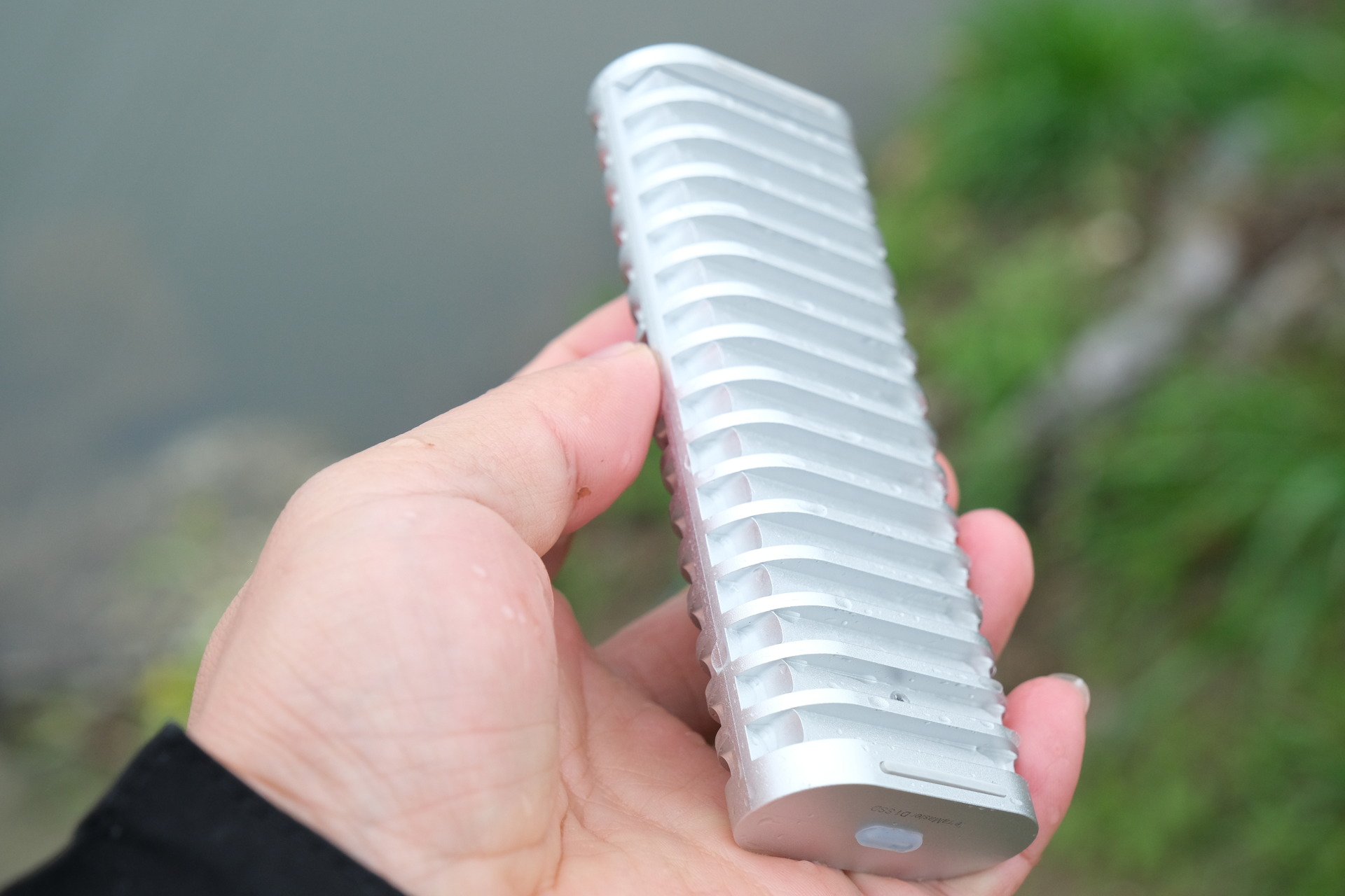 实测掉水里捞起来,没做任何防护(仅顶部有一个自带的防尘塞),机身擦干后插电脑上,里面的素材一点没丢,读取也完全正常。还有一次,我不小心把它从一米多高的石阶上掉下去,当时心都凉了,结果捡起来一看,机身只是有个小小的划痕,插手机上照样能正常备份照片,一点不影响使用。
