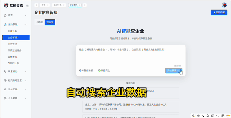 B端商机智能获取:从“人海搜寻”到“智能情报作战”对于B2B业务,红熊AI还提供了堪比专业商业情报库的智能查询与触达能力,助力企业高效锁定目标客户: