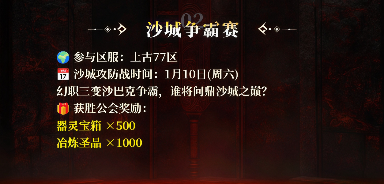 活动时间:1月10日(周六)沙城攻防战开启