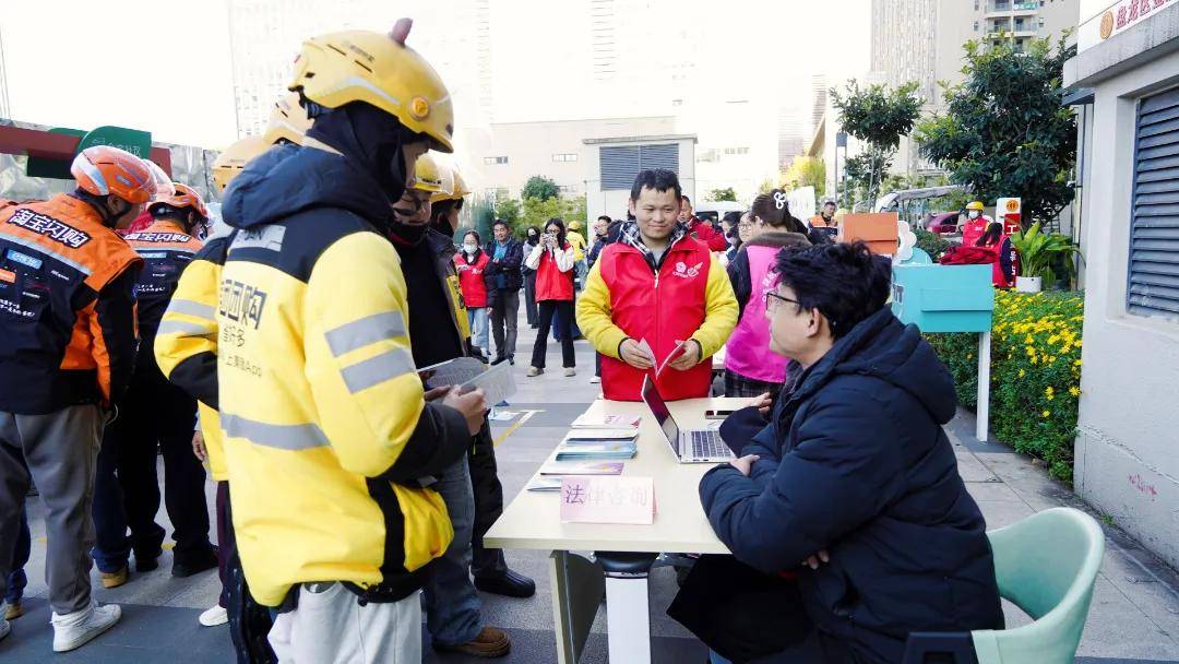 12月5日下午,昆明市盘龙区金辰街道金实社区工会驿站前的文化微广场上一片暖意融融,一场名为“暖冬关爱行动”的驿站主题活动正在温暖进行。免费手机贴膜摊位前,外卖骑手们有序排队等待;健康义诊区内,环卫工人李大姐刚测量完血压,正准备再去做一个手部护理;科普套圈游戏区域则传来了阵阵欢声笑语……这些温暖人心的场景,正是这个工会驿站常态化服务户外劳动者的生动缩影。