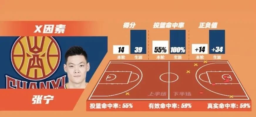 张宁是2025年12月18日与浙江稠州金租男篮比赛时肌肉拉伤受伤,被迫停赛。2026年1月16日,在山西汾酒男篮客场两连败的情况下,第十五轮客场与北京男篮比赛,张宁选择复出,他登场29分钟11中6拿到14分1板2助攻,投篮命中率55%,正负值+14,成为主宰北京男篮与山西汾酒男篮比赛胜负的X因素。